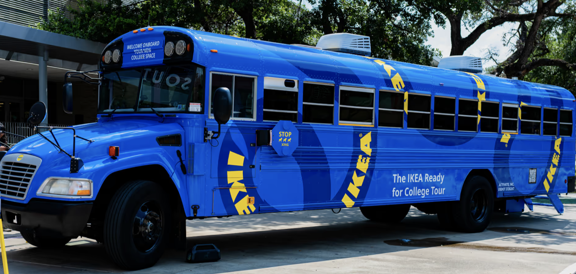 IKEA brought a three-bus mobile tour to college campuses across the country, helping students shop for dorm furniture while signing up for the Friends & Family membership program. Each school bus was custom-wrapped and featured a mock dorm room showcasing IKEA furniture styles. Students walked through the showroom and entered an interactive zone with engagement stations: