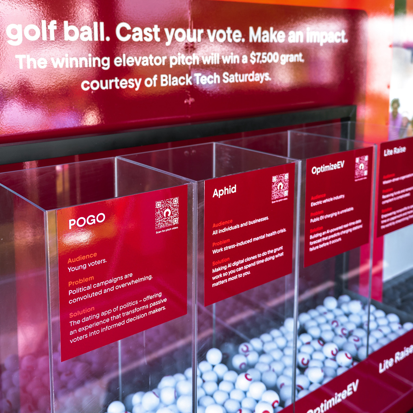 The voting kiosk turned passive information into active participation. Attendees could read about local Detroit residents seeking grants for community projects, then cast votes to help decide who received funding. This approach made visitors collaborators in the brand story rather than just observers, giving them a personal stake in the outcome.