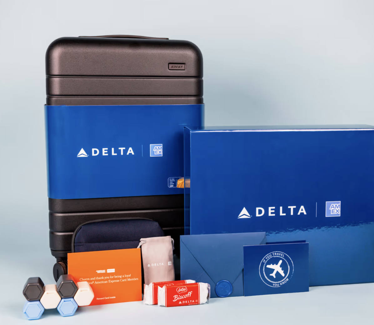 - Tier Two Experience: Curated travel essentials, including tech organizers, Biscoff cookies, and Resy dining credits, presented in magnetic closure boxes with structured inserts.