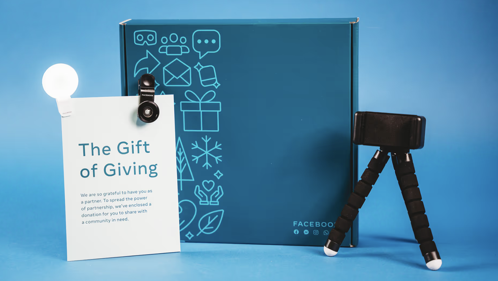 Meta created a personalized holiday experience for 30,000 employees through a custom shopping portal where recipients selected from three gift categories. Each category featured items sourced from small businesses, with selections shipped directly to homes in branded packaging designed for premium unboxing experiences.