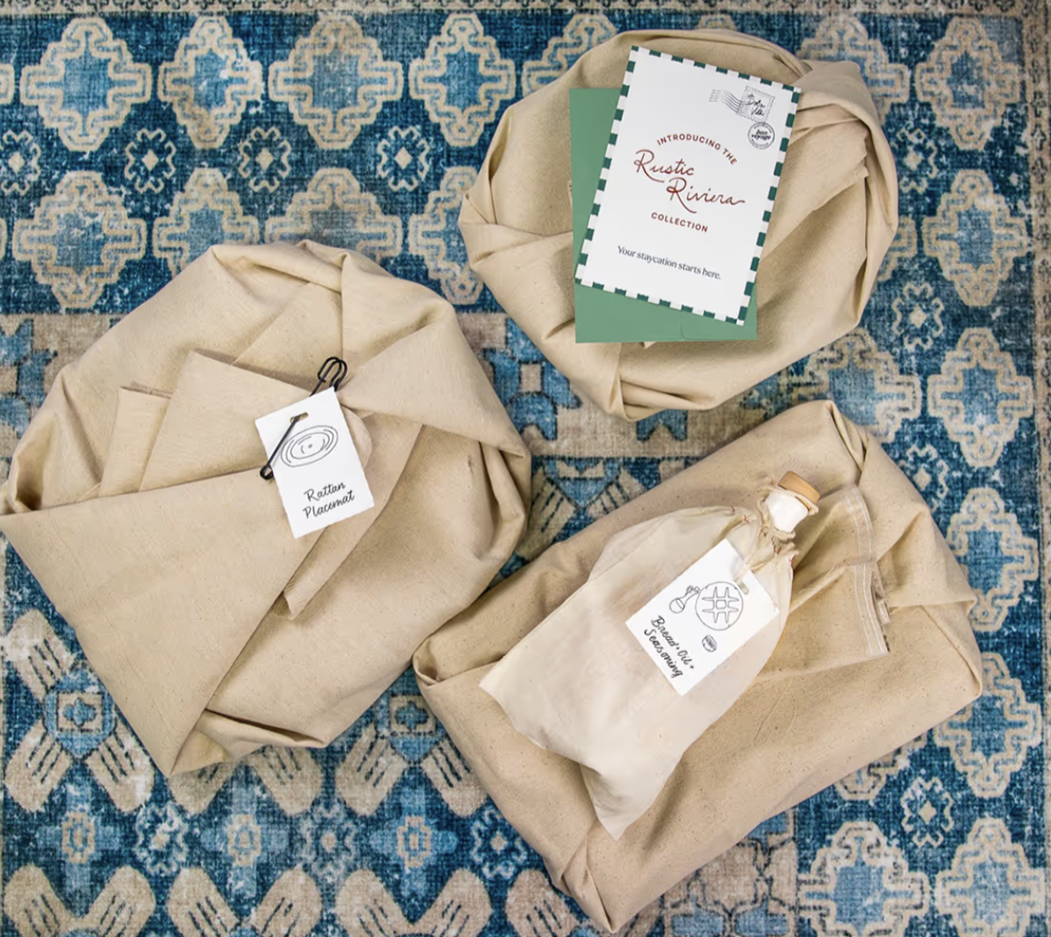 Multi-brand partnerships let companies split costs while giving recipients more valuable packages. When brands team up, recipients get variety that works better for content creation. The Ruggable Rustic Rivera campaign included everything needed for a European dinner party: terracotta vases with olive branches, dinner plates, placemats, table runners, napkins, candles, Italian olive oil, spices, and fresh bread. Recipients could create full tablescape content showcasing the rug while having actual dinner party supplies to use and photograph.