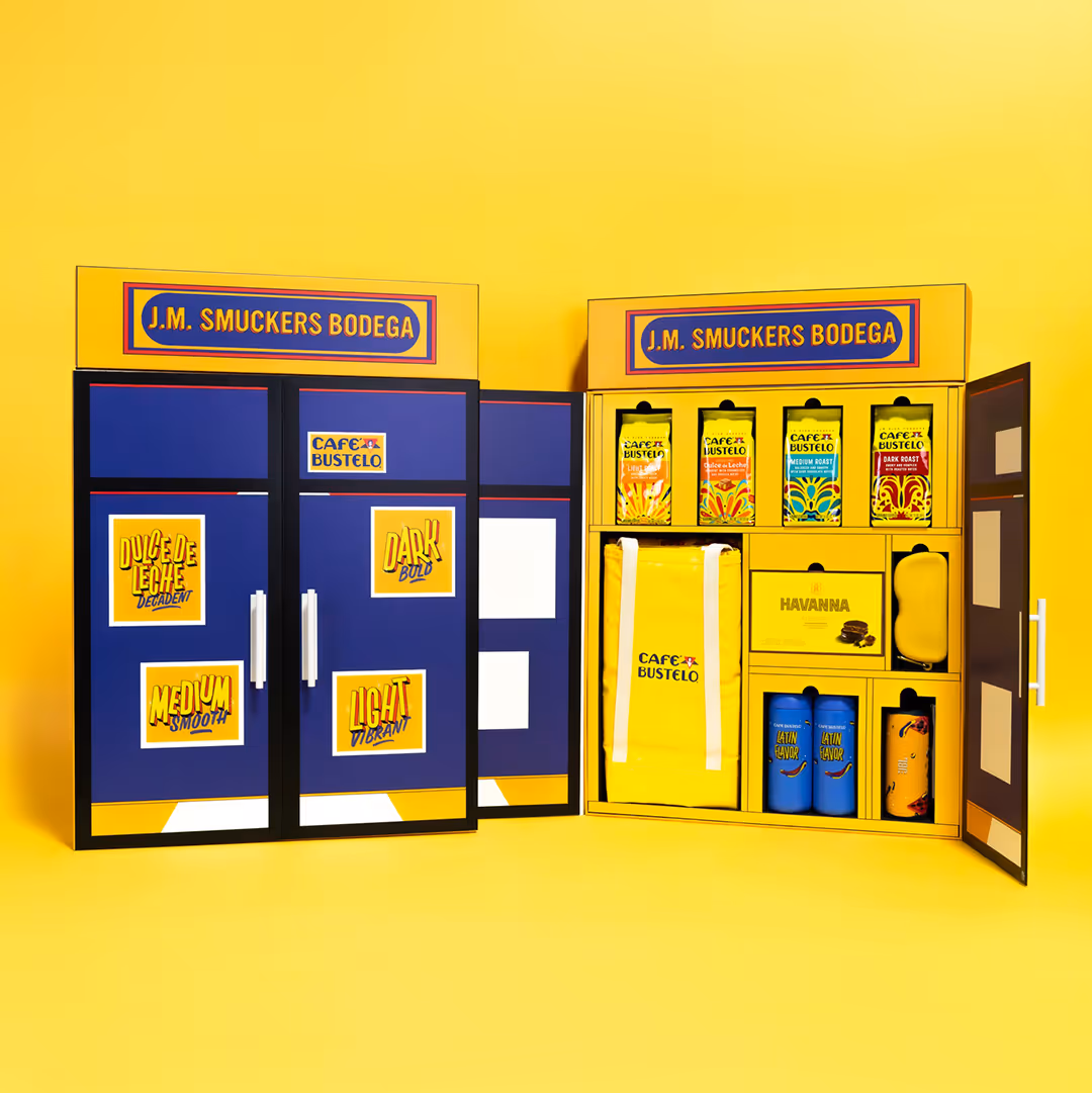 Celebrate Café Bustelo’s NYC roots and vibrant Latin heritage with a bodega-inspired experience that feels both authentic and energizing. Through bold design and custom illustrations, create branded gifting that delights loyal fans and captures the eclectic spirit of a true bodega—offering a little bit of everything, from coffee essentials to culturally inspired treasures—crafting a memorable, multifaceted brand moment.
