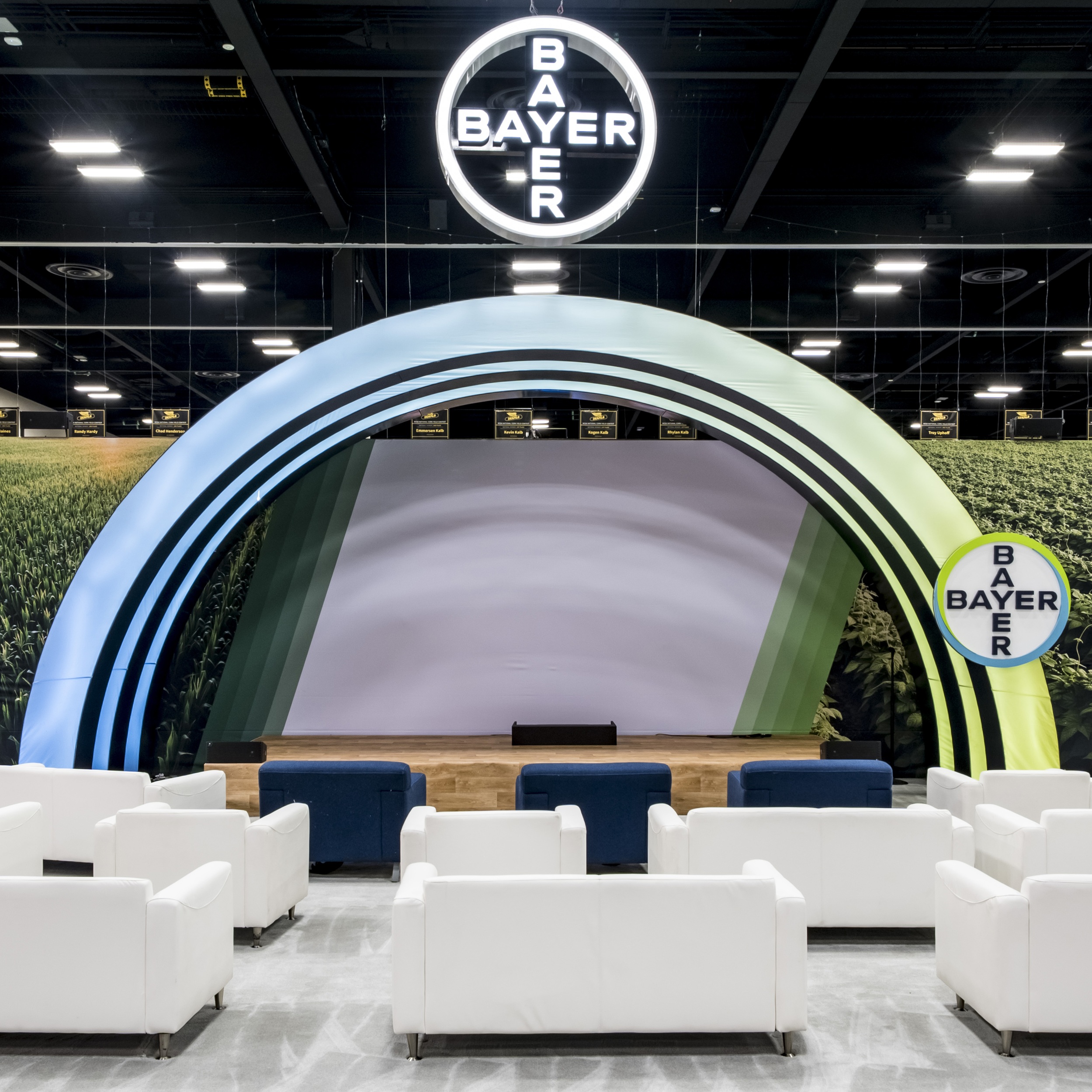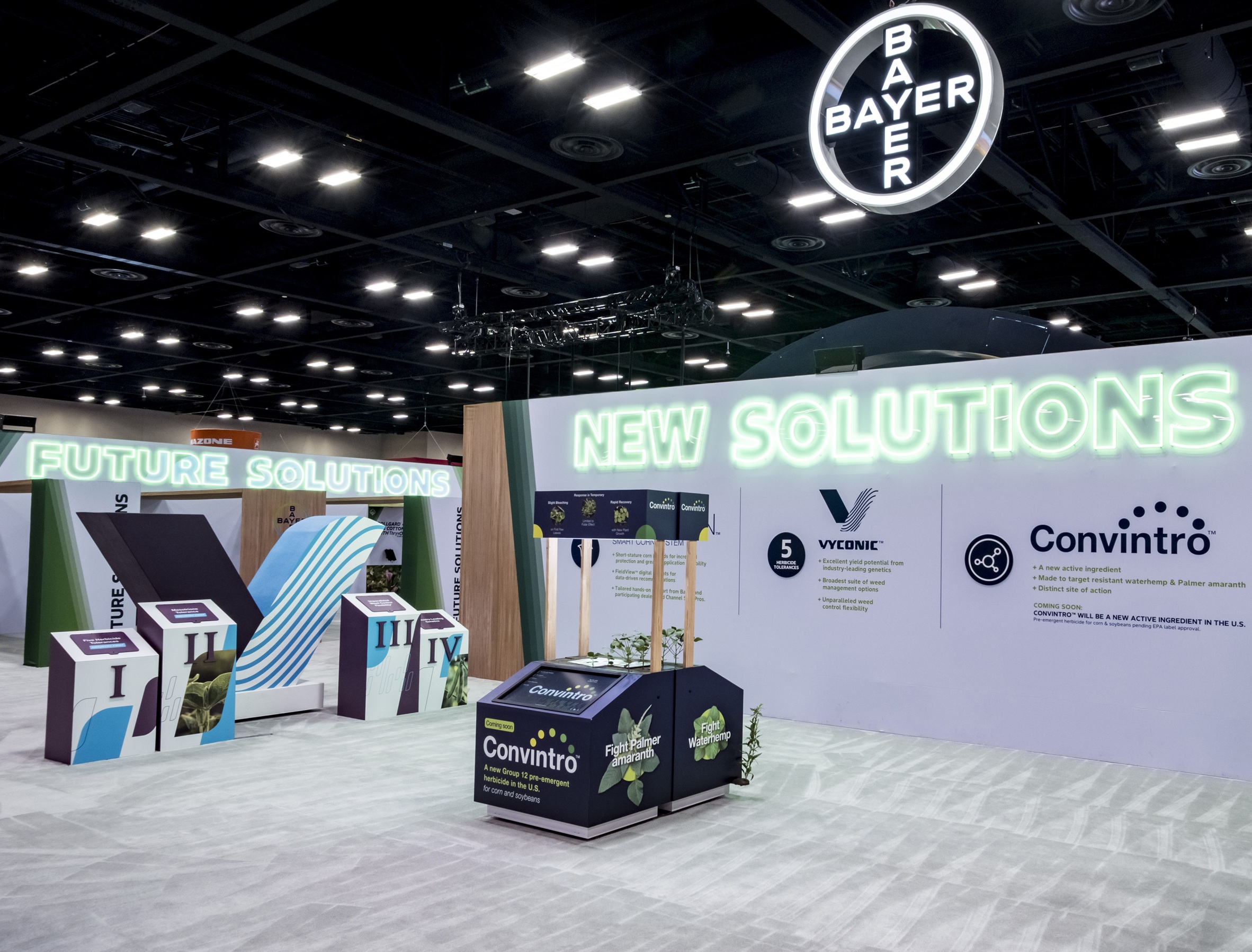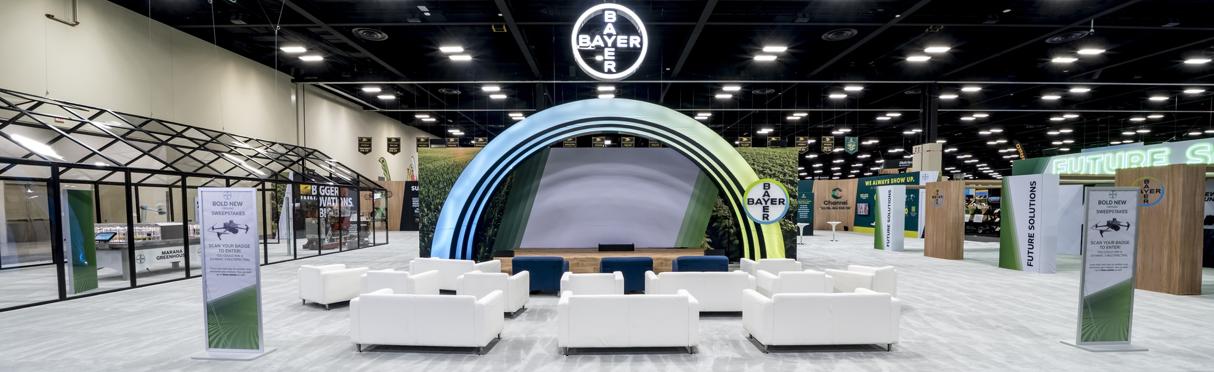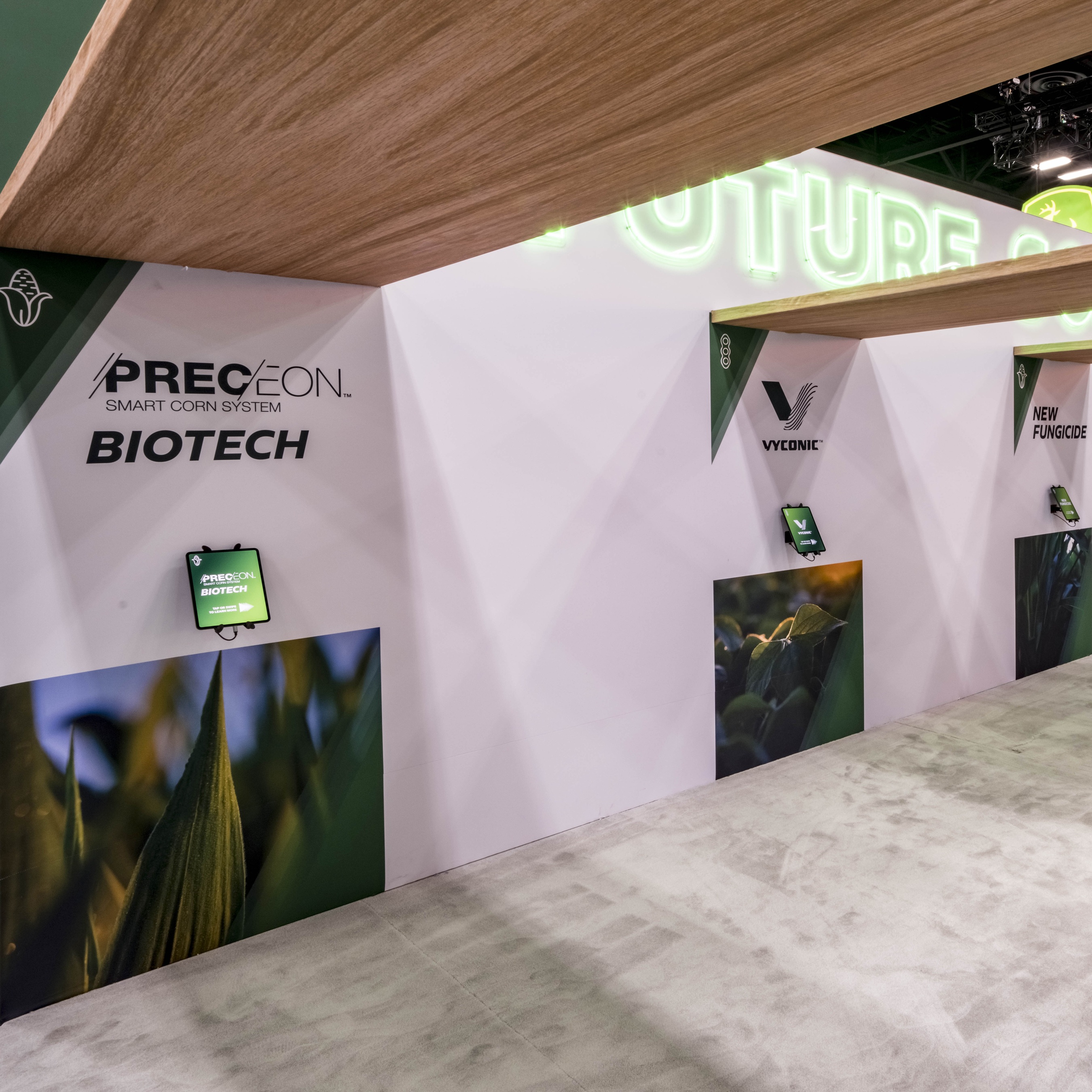 The concept that sold for this years Commodity Classic was a hybrid approach of integrating existing assets and bringing in a fresh new look for the Bayer brand. Utilizing an open floor plan and allowing a natural flow to happen, consumers could find themselves staying in the Bayer booth for longer.