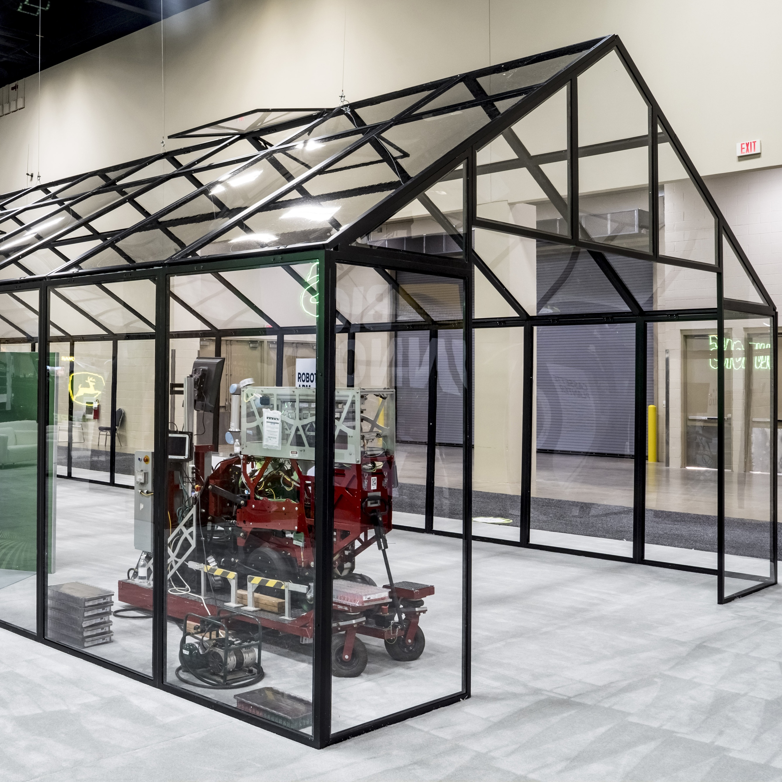We were able to create a custom 47' long greenhouse structure to house the "Product Story" room. With high vaulted ceilings and see through plexi-glass, this area really brought the whole story together.