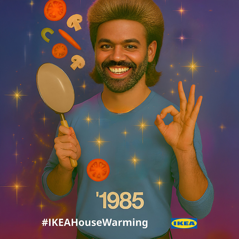 Guests were transformed back to the mid 80's with an AI glam shot. adding a whimsical touch to each photo with funky outfits, voluminous hair, and flying food to celebrate the 40th anniversary of the (m)eatball and the essence of the 80's.
